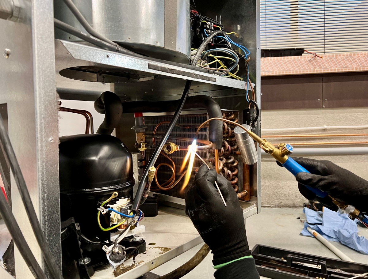 Meillä olemme TUKES:in rekisteröimä kylmälaitteiden huoltoliike yli tai alle 3:n kg:n täyttömäärän omaaville kylmälaitoksille.